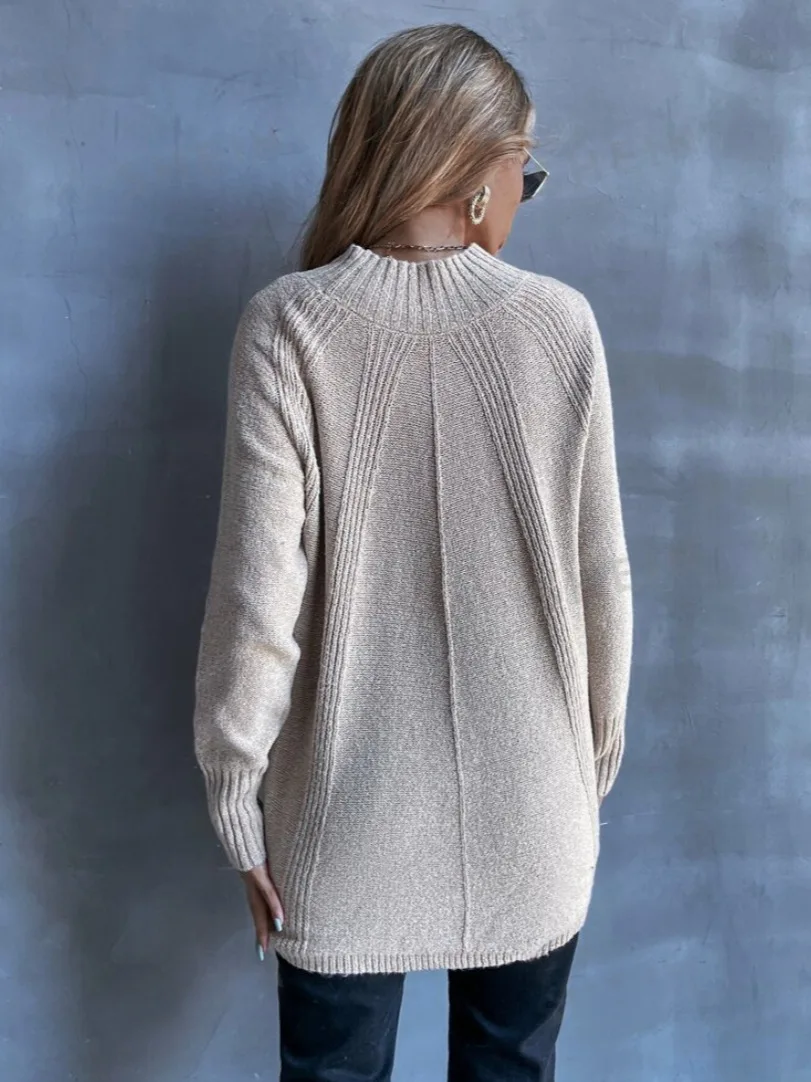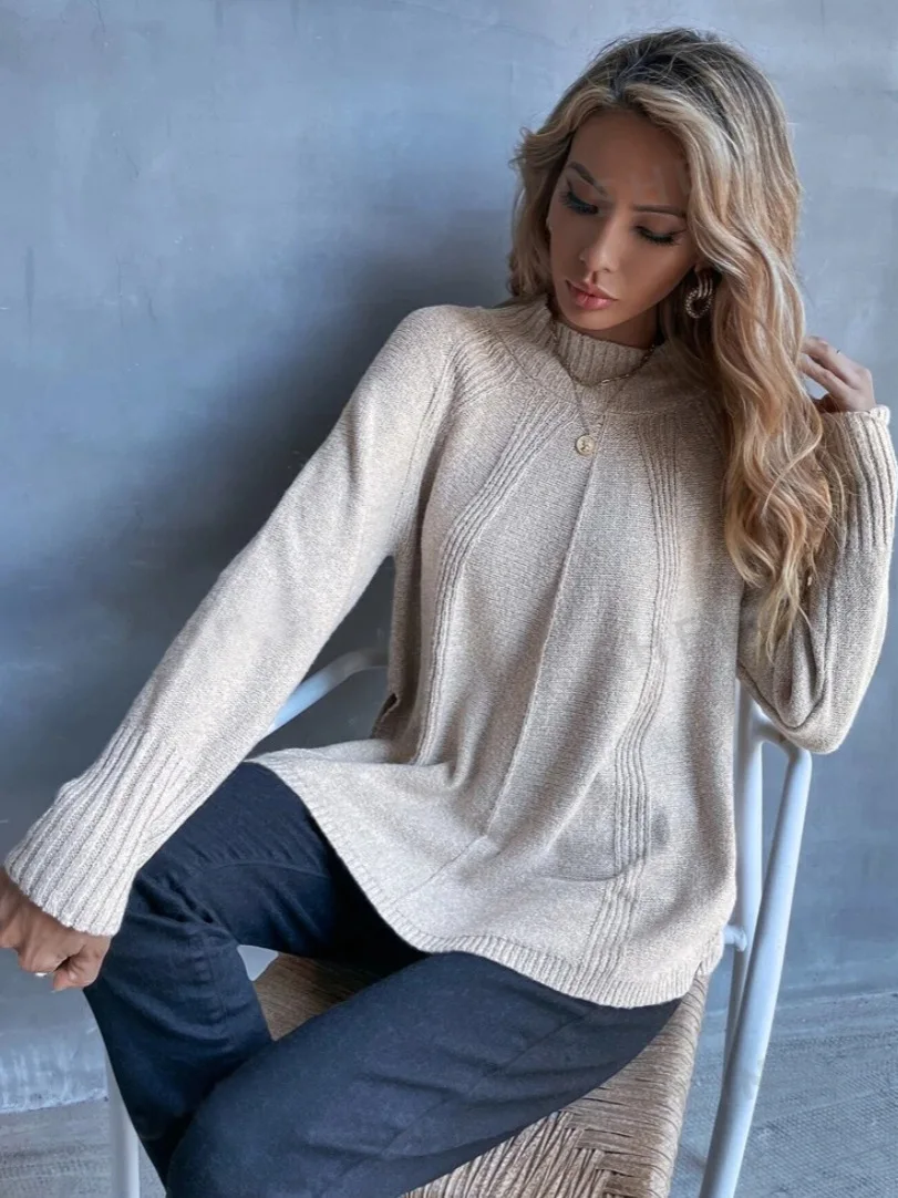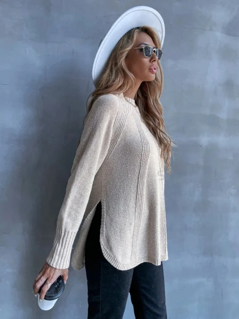 Europe and United States Women's Loose Split Knitted Long Sleeve Crew Neck Sweater New Autumn Casual Style